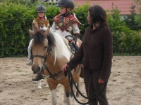 Da der große Preis von Süptitz wegen mangelnder Beteiligung ausfällt, machen wir kurzerhand einen großen Preis von Schöna daraus - eine ziemlich modifizierte Führzügelklasse mit Kostümen und zwei Indianer-Fahrrädern, von denen eins nicht ganz fit ist (Pony hat eine kleine Verletzung, die sich in den nächsten Tagen leider zu einem ziemlichen Elefantenfuß entwickelt).