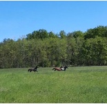Heute fliegen die Jungs raus. Erst noch Wurmkur - Lauser erstaunlich brav, Carli erstaunlich bockig, Heraldix voll cool. Dann geht es geführt durchs Dorf, sehr sehr spannend, auf die Wiese am Wäldchen. Nach einem kurzen Ausreißer sind alle glücklich hinterm Zaun und machen erstmal ordentlich action. Bei den Mädels sieht es kurz darauf schon ganz anders aus... vergleicht selbst: