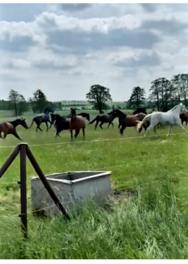 Die Stutfohlen fliegen raus, Mädels-Weide auf der Konsumkoppel in Cavertitz. Verladen ist bissl spannend, die Gesellschaft überm Zaun dann auch, aber grünes Gras ist ganz eindeutig das wichtigste.